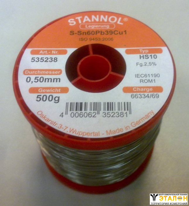 Припой HS10 соответствует стандарту DIN EN 29454-1, тип 1.1.2. (ранее — DIN 8511 F-SW26).