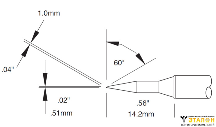 Основные технические характеристики Картридж-наконечник для MX, скос 60 град. удлиненный 1.00 х 14.2 мм