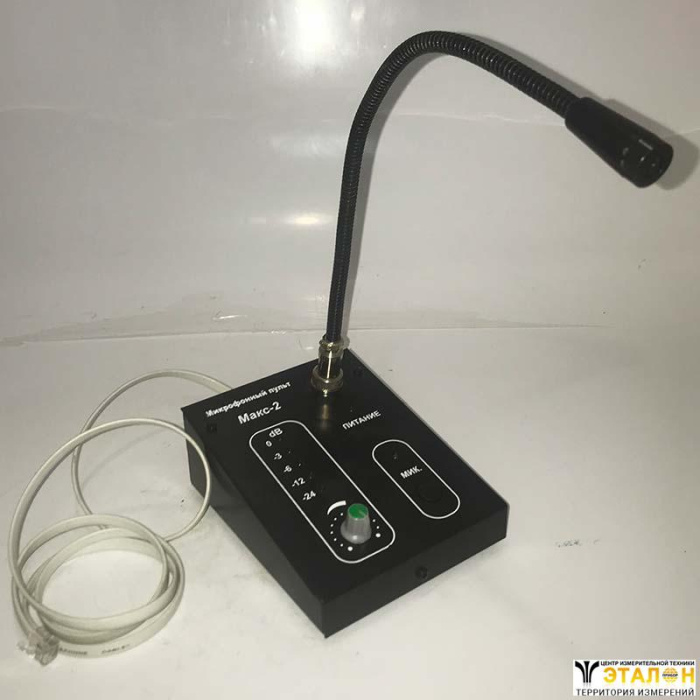Микрофонный пульт «Макс-2» выполнен в металлическом корпусе. На его передней панели расположены: съёмный микрофон на гибкой стойке, индикатор включения питания и микрофона, кнопка включения микрофона и регулятор уровня громкости сигнала. На задней стенке пульта находятся тумблер для включения питания, специальный разъем для подключения к усилителю-микшеру «Пегас-2», гнездо линейного выхода, а также отдельное гнездо для подключения сетевого адаптера, если пульт «Макс-2» используется самостоятельно без усилителя-микшера «Пегас-2».