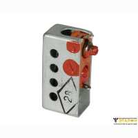 На пластмассовом основании с помощью винта и гайки закреплена биметаллическая пластина, на свободном конце которой приклепан сферический контакт. На другом конце основания закреплен регулировочный винт с плоским контактом. Положение регулировочного винта зафиксировано контргайкой.
