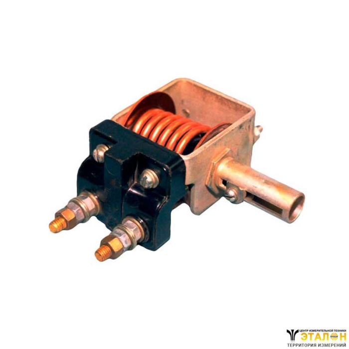Внутри трубки находится якорь, который имеет возможность свободного перемещения вдоль трубки. Положение якоря определяет величину тока срабатывания реле. При движении вверх якорь через толкатель размыкает контакты электрической блокировки.