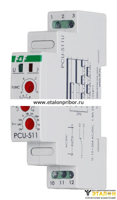 Реле времени PCU-511U 12-264В AC/DC 8А IP20 многофункциональное монтаж на DIN-рейке 35мм