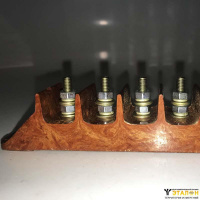 Контактный зажим изготовлен из пластмассы, имеет винт с шайбами и гайками для присоединения наконечников.
