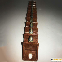 Клеммная колодка СК-2В представляет собой набор изоляционных контактных зажимов, собранных на одной стяжной шпильке, боковых изоляционных стенок и металлических лапок с отверстиями.