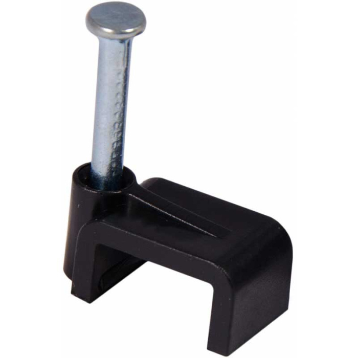 Скоба черная 9 мм плоская применяется для удобства крепежа проводов и кабелей различных сечений (к дереву, прессованному картону, швам кирпичной кладки, к штукатурке, бетону, кирпичу).