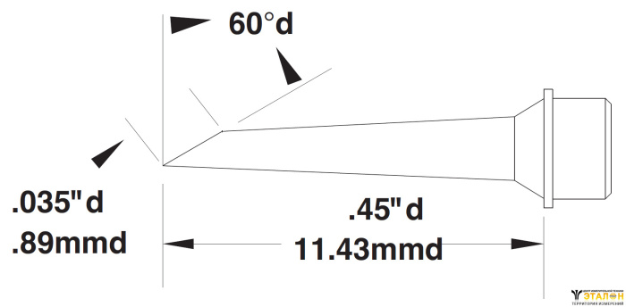 Основные технические характеристики SMC-7HF6009S Картридж-наконечник для СV/MX, миниволна 0.89х11.43мм (замена SMTC-1175) METCAL