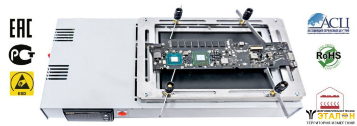 встроенный регулируемый держатель плат, зажимает платы с габаритами от 10х10мм |