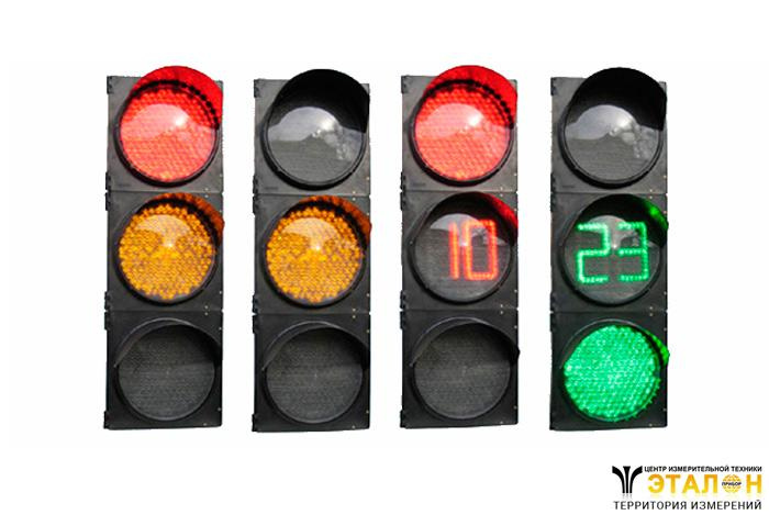 Светофор транспортный с отсчетом времени Т 1.1.ТВЧ-АТ отличается от обычных дорожных светофоров встроенным в секцию сигнала желтого цвета табло отсчета времени.