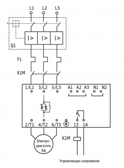 Устройство плавного пуска ОВЕН УПП2 должно быть установлено с автоматическим выключателем цепи, тепловым реле и линейным контактором для подачи силового напряжения после подачи управляющего напряжения и команды «Пуск».
