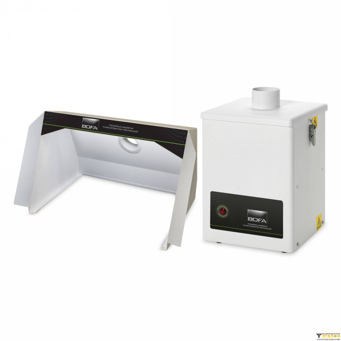 Вытяжной короб – это устройство, позволяющее вести безопасную работу с вредными для здоровья материалами, такими как клеи, растворители, краски, паяльные материалы. Так же вытяжные коробы используются для паяльных работ на предприятиях с жесткими требованиями безопасности труда. Конструкция вытяжного короба сделана так, что в нормальных условиях он улавливает абсолютно все пары и вредные частицы из внутреннего рабочего пространства.Важной характеристикой является скорость потока воздуха, проходящего с лицевой стороны короба к воздуховодам в фильтрующий блок. Достаточной скоростью считается 0.5м/с, именно такая скорость не позволит вредным веществам вырваться наружу. BOFA представляет две модели вытяжных коробов с разными размерами для блоков фильтрации V250-GF и V600-GF. А так же BOFA FC1000 – кабина со встроенным дымоуловителем. Все модели оборудованы внутренней подсветкой на ярких и долговечных светодиодах. Корпус выполнен из стали с порошковым покрытием, а воздуховоды включены в комплект.