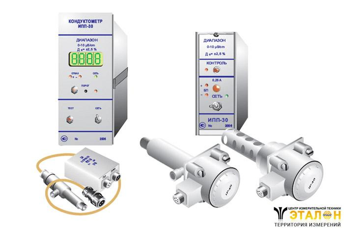 Кондуктометр типа ИПП-30 (IP40) предназначен для автоматического непрерывного контроля наличия примесей в воде по электролитической проводимости (ЭП) путем преобразования ее значений в унифицированный непрерывный сигнал постоянного тока и визуальный сигнал измерительной информации. Кондуктометр является стационарным прибором и применяется для контроля водного режима.