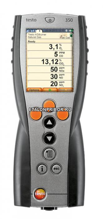 Управляющий модуль testo 350, предназначен для управления блоком анализатора и отображения данных измерений; вкл. перезаряж. аккумулятор, внутреннюю память прибора, USB-интерфейс и разъем для подключения к шине данных Testo