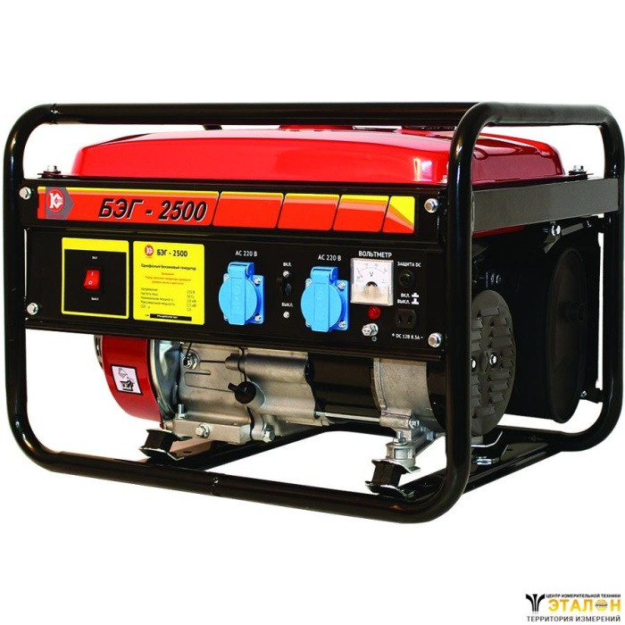 Переносной бензиновый электроагрегат с двигателем внутреннего сгорания Калибр БЭГ-2500 предназначен для автономного энегоснабжения, в повторно-кратковременном режиме, потребителей бытовых электроприборов со стандартными характеристиками сети переменного тока: напряжение – 230В, частота – 50Гц. Двигатель работает на неэтилированном бензине АИ- 92. Он оснащён мембранным карбюратором и электронной системой зажигания. Для запуска двигателя служит ручной стартёр