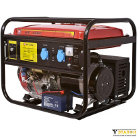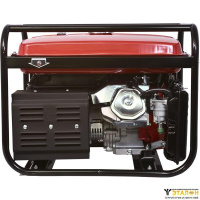 Переносной бензиномоторный электроагрегат с двигателем внутреннего сгорания Калибр БЭГ-6500А предназначен для автономного энегоснабжения, в повторно-кратковременном режиме, потребителей бытовых электроприборов со стандартными характеристиками сети переменного тока: напряжение – 230В, частота – 50Гц. Двигатель работает на неэтилированном бензине АИ-92. Он оснащён мембранным карбюратором и электронной системой зажигания. Для запуска двигателя служит ручной стартёр (бензогенератор комплектуется аккумулятором и замком зажигания электрического стартёра).