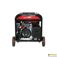 Двигатель работает на неэтилированном бензине АИ- 92. Он оснащён мембранным карбюратором и электронной системой зажигания. Для запуска двигателя служит ручной стартёр (бензогенератор комплектуется аккумуляторной батареей и замком зажигания электрического стартёра). Модель оснащена рукояткой и колесами для удобной транспортировки к месту работы.