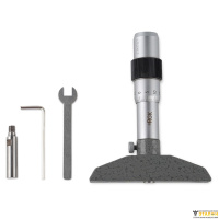 Глубиномер микрометрический RGK GM-50 представляет собой механический измерительный прибор, который может использоваться в ходе высокоточных работ по обработке металлов и прочих материалов, обеспечивая контроль геометрических параметров изделий с погрешностью, не превышающей ±4 мкм. Инструмент оборудован стандартной микрометрической головкой с максимальным вылетом до 25 мм. В отличие от младшей модели GM-25, для измерений в пределах от 25 до 50 мм поставляется дополнительный стержень с увеличенной длиной вылета. При необходимости, возможно дальнейшее повышение пределов измерения инструмента путем его дооснащения сменными измерительными элементами нужного типоразмера.