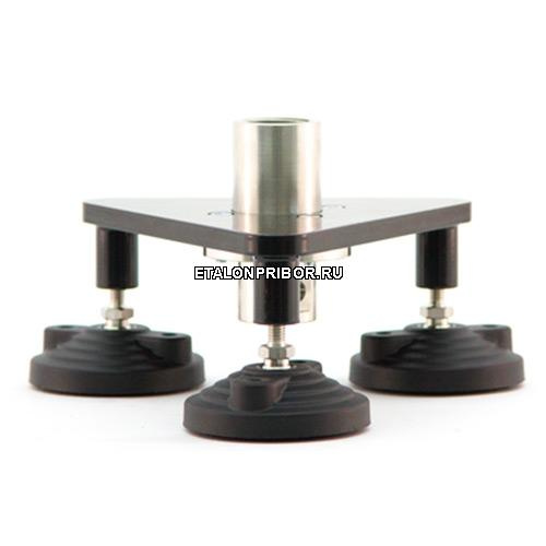 В конструкции стойки данной модификации предусмотрено наличие основания. Оно выполнено в виде стальной плиты. На него монтируется сама стойка. В нижней части плиты присутствуют три опоры, высоту которых можно регулировать. Благодаря этому удается максимально точно настроить положение. На верхней части стойки есть переходник, при использовании соответствующей гайки возможно подсоединение манометра. Особенности конструкции обеспечивают простоту закручивания. Подключение стойки к основному устройству осуществляется с применением пластиковой или стальной трубки, а также фитингов.