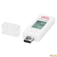USB-тестер UNI-T UT658 выполнен в прямоугольном корпусе из прочного белого пластика, с прозрачным окном, прикрывающим дисплей. На тыльной стороне изделия нанесена маркировка и указаны данные с техническими характеристиками измерителя. Гнездо USB разъема размещено с противоположной стороны от коннектора, соосно, что упрощает подключение. Штекер в нерабочем положении прикрывается съемной крышкой, благодаря чему минимизирован риск его загрязнения и повреждения.