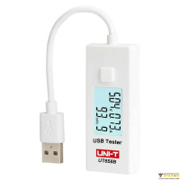 За счет одновременного отображения на дисплее показателей напряжения, силы тока и принятой или отданной емкости в мА ч, USB-тестер UNI-T UT658B характеризуется высокой наглядностью, позволяя визуально контролировать все характеристики, без каких-либо переключений. Подсветка дисплея обеспечивает хорошую различимость цифровых индикаторов при слабом или отсутствующем внешнем освещении, упрощая считывание получаемых результатов. Прибор запитывается непосредственно от входного USB-разъема, обходясь без внутренней батареи, что минимизирует его эксплуатационную стоимость.