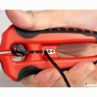Jonard JIC-183 - мощные ножницы для для резки меди, алюминия, кожи, пластика и других материалов. Инструмент оснащен стриппером для снятия изоляции с проводов 1 мм, 1.5 мм, 2 мм (18 AWG, 14 AWG и 12 AWG). Одно лезвие имеет зазубрины для предотвращения выскальзывания материала во время резки. Рукоятки сделаны из не скользящего двухкомпонентного материала. Ножницы можно запирать в закрытом положении специальным предохранителем. Также они оснащены регулировочным винтом (Torx, “звездочка”) и возвратной пружиной.