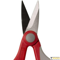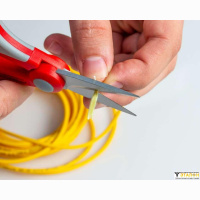 Предназначены для разрезания кевларовой ткани (Kevlar®) и кевларовых нитей при монтаже оптического кабеля или производстве патч-кордов. Также пригодны для резки изоляции кабеля, кабельных стяжек, пластика и других материалов. Ножницы изготовлены из высоко углеродистой нержавеющей стали с твердостью 58-60 единиц по шкале Роквелла, что является максимальным значением твердости для ножа, так как при более высоких значениях лезвие становится, хоть и тверже, но более хрупким. Одно лезвие ножниц имеет серрейторную (зазубренную) заточку, чтоб удерживать материал при разрезании и не допустить его выскальзывания. Инструмент оснащен регулировочным винтом, закрытым защитным колпачком.