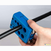 Стриппер MS-526 напоминает прищепку в которой предусмотрено 8 прецизионных пазов разного диаметра с режущими лезвиями внутри. Четыре паза предназначены для продольного реза изоляции кабеля, ещё четыре - выполняют круговой надрез, позволяя удалить участок защитного покрытия с любого участка кабеля, модуля или защитной трубки.