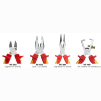 | 2 | JIC-INP-2065 | Длинногубцы 165 мм, изолированные до 1000 В Тип реза: боковой Напряжение тестирвоания: 10 000 вольт Рабочее напряжение: 1000 вольт Материал инструмента: хром-ванадиевая сталь 60 CRV Материал шарнира: хром-ванадиевая сталь 40 CRV Высокочастотная индукционная закалка Рукоятки: двухцветный термопластичный эластомер (TEP) Соответствует международным стандартам IEC 60900, ASTM F1505-01 Длина: 6-1/2" (165.1 мм) Вес: 0.363 lbs (164.66 г) |