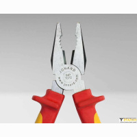 | 1 | JIC-INP-1072 | Плоскогубцы 184 мм, изолированные до 1000 В Тип реза: боковой Напряжение тестирвоания: 10 000 вольт Рабочее напряжение: 1000 вольт Материал инструмента: хром-ванадиевая сталь 60 CRV Материал шарнира: хром-ванадиевая сталь 40 CRV Высокочастотная индукционная закалка Рукоятки: двухцветный термопластичный эластомер (TEP) Соответствует международным стандартам IEC 60900, ASTM F1505-01 Длина: 7-1/4" (184.15 мм) Вес: 0.634 lbs (288 г) |