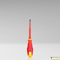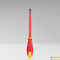 | 9 | JIC-INS-4100 | Отвертка с прямым шлицем, изолированная до 1000 В, Slotted 3.2 х 101 мм Тип шлица: Cabinet Slotted (прямой) Размер шлица: 5/32" (3.96 мм) Длина жала: 4" (101.6 мм) Материал: 60 CRV (хром-ванадиевая сталь) Рукоятка выполнена из двухцветного термопластичного эластомера (TEP). Наконечник с черным оксидным антикоррозийным покрытием. Узкое изолированное окончание стержня для доступа в труднодоступные места Намагниченный наконечник. Испытана напряжением 10 000 вольт. Изолирована до 1000 вольт. Соответствует международным стандартам IEC 60900, ASTM F1505-01. Общая длина: 7-1/2" (190.5 мм) Вес: 0.114 lbs (51.71 г) |