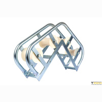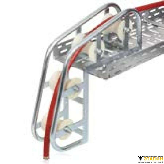 Katimex 105230 - угловая вертикальная 4-х роликовая направляющая система. Она предназначена для монтажа кабеля (или группы кабелей) диаметром до 80 мм по кабельным лоткам.