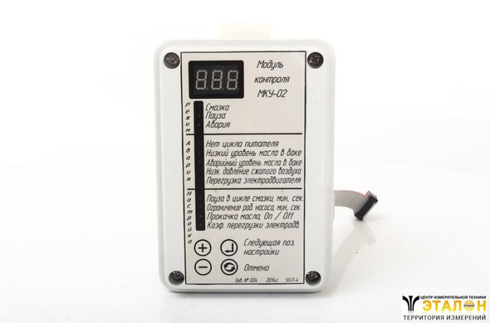 Модуль контроля и управления МКУ-02 обеспечивает коммутацию силовых цепей электродвигателя насоса, автоматического контроля и управления двухлинейной системой смазки.
