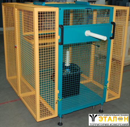Установка включает испытательное поле, огороженное со всех сторон защитной металлической сеткой, внутри которого устанавливается источник высокого напряжения и испытуемый объект. Испытательное поле также имеет дополнительный проходной изолятор, позволяющий, при необходимости, осуществлять подключение испытуемого объекта расположенного вне испытательного поля решетки. В этом случае испытуемый объект и соединительные провода огораживаются временными заграждениями, с предупреждающими плакатами.