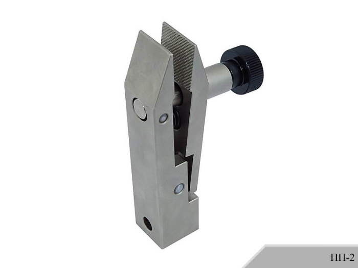 Зажимные губки имеют зубчатую поверхность. Зажим образца осуществляется при помощи регулировочного винта.