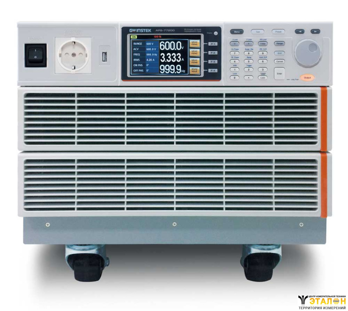 | Особенности | Дискретность установки 0,01 В/ 0,01 Гц. Низкий коэффициент гармоник (0,5%). Измерительные функции (коэффициент мощности, броски пускового тока и испытательные режимы - программирование, регулирование скорости нарастания/ спада напряжения по времени. Создание и воспроизведение тестовых последовательностей и сигналов произвольной формы. Опция, увеличение диапазона выходного напряжения 0 ... 600 В и частоты до 999,9 Гц. |