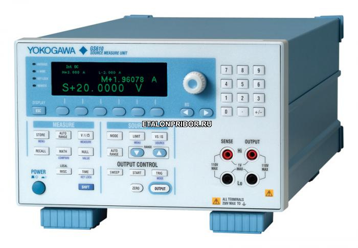 GS610 Yokogawa – высокоточный многофункциональный программируемый источник напряжения/тока, который объединяет в себе функции генерирования и измерения напряжения/тока. Максимальное выходное напряжение и ток составляют 110 В и 3,2 А соответственно. Возможна оценка широкого диапазона основных электрических характеристик, так как GS610 Yokogawa может работать как источник или электронная нагрузка. Основные характеристики: