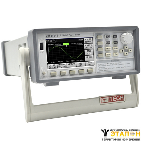 Измеритель мощности IT9121E рассчитан на максимальные входные напряжения 600 В среднеквадратичного значения (с.к.з.) и ток 20 А. При этом он имеет ширину полосы измерения равную 100 кГц и может легко использоваться для измерения напряжения, тока, мощности, частоты, гармоник и других параметров. Стандартная конфигурация включает в себя интерфейсы USB, GPIB, RS232 и LAN, а также интерфейсы для периферийных устройств на основе USB. Пользователь также может сохранить измеренные параметры на внешнем носителе. Основная погрешность измерения напряжения и тока составляет 0,1%. Кроме того, измеритель мощности имеет широкие интегральные функции измерения, такие как, например, измерение активной мощности. Данное оборудование находит широкое применение для испытаниях электродвигателей, бытовой техники, источников бесперебойного питания (ИБП) и и другого оборудования.