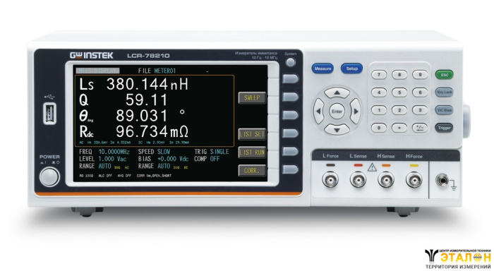 | Измеряемые параметры | импеданс (|Z|/ R), фазовый угол (θDEG/ θRAD), индуктивность (Ls / Lp), ёмкость (Cs / Cp), активное сопротивление (Rs / Rp), ЭПС (ESR), добротность (Q), коэфф. диэлектрических потерь (D), полная проводимость (Y), активная проводимость (G), реактивная проводимость (B), реактивное сопротивление (X), измерения сопротивления на постоянном токе (Rdc) |