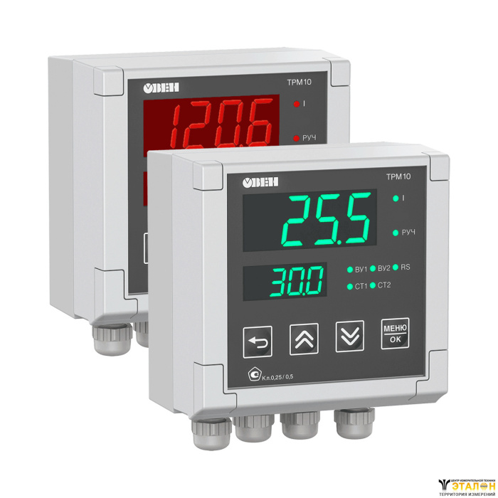 ТРМ10 – это ПИД-регулятор температуры, давления, уровня, влажности, концентрации вещества, расхода или других физических величин в различных технологических процессах. Главная особенность ТРМ10 – это алгоритм ПИД-регулятора, предназначенный для точного поддержания заданных параметров до ±0,2 ˚С методом ШИМ-регулирования или плавного изменения унифицированного выходного сигнала. Наличие сетевого интерфейса RS-485 позволяет производить удаленную настройку и управление прибором.
