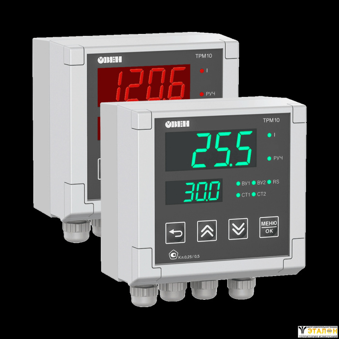 ТРМ10 – это ПИД-регулятор температуры, давления, уровня, влажности, концентрации вещества, расхода или других физических величин в различных технологических процессах. Главная особенность ТРМ10 – это алгоритм ПИД-регулятора, предназначенный для точного поддержания заданных параметров до ±0,2 ˚С методом ШИМ-регулирования или плавного изменения унифицированного выходного сигнала. Наличие сетевого интерфейса RS-485 позволяет производить удаленную настройку и управление прибором.