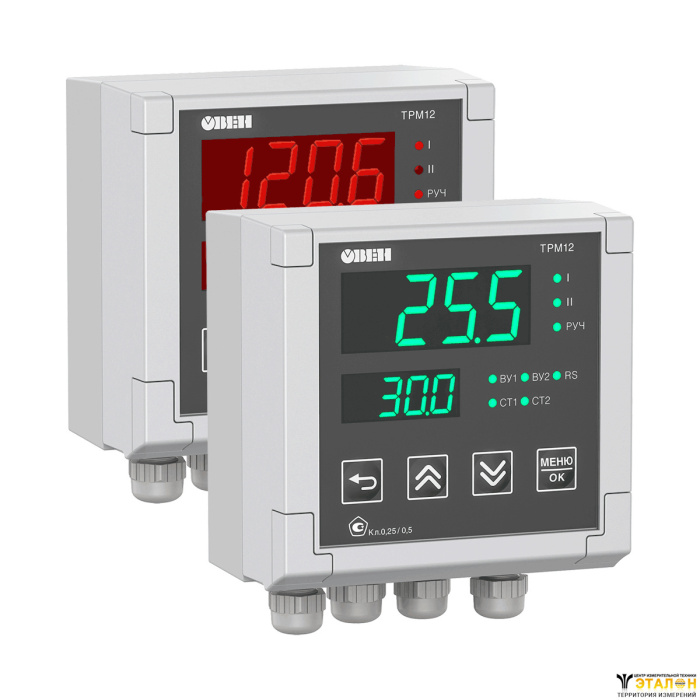 ОВЕН ТРМ12 осуществляет цифровую фильтрацию входного сигнала от помех и коррекцию измерительной характеристики датчика («сдвиг», «наклон»), а для датчиков с унифицированным выходным сигналом тока или напряжения осуществляется масштабирование шкалы.