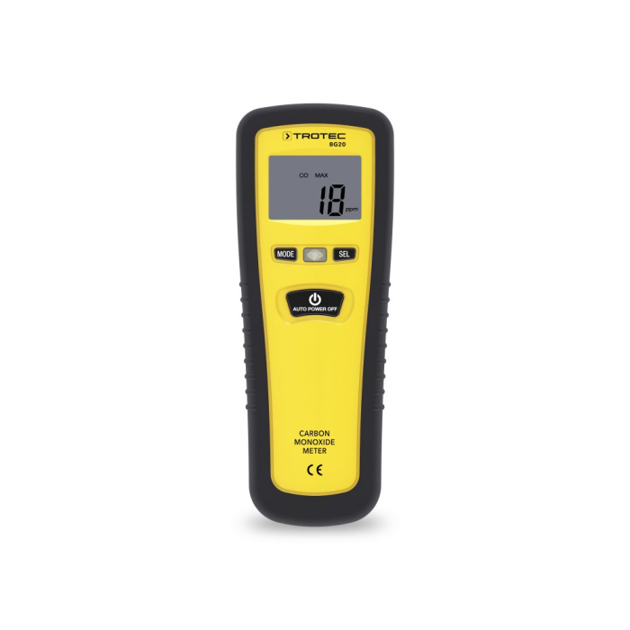 С помощью BG20 можно определить точное содержание CO в окружающем воздухе, таким образом обеспечить соблюдение нормативов по предельным значениям на рабочем месте. Переносной измерительный прибор готов к работе через несколько секунд после включения. BG20 измеряет концентрации CO в диапазоне от 0 до 1000 ppm с точностью до ± 10 ppm и отображает данные на большом дисплее с подсветкой. При необходимости десять измеренных значений могут быть сохранены непосредственно в памяти устройства. Благодаря функции сигнализации удобно быстро проверять критические значения, в случае значений выше 35 ppm измерительное устройство автоматически предупреждает пользователя с помощью акустического сигнала, интервал которого сокращается с увеличением значений и от 200 ppm излучается как постоянный предупреждающий сигнал. Автоматическое отключение после 15 минут бездействия значительно увеличивает время автономной работы.
