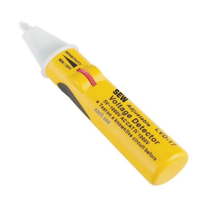 Карманный микропроцессорный интеллектуальный индикатор переменного напряжения (5…1000 В / частота: 50…500 Гц). Возможность выбора уровня чувствительности регулировочным кольцом. Надежная работа без необходимости гальванического контакта в тестируемой цепи. Световой светодиодный и звуковой индикаторы переменного напряжения, для промышл. и бытовых условий, светодиодный индикатор уровня заряда батареи, 1000 В (кат IV), 1,5 В×2 (тип AAA), 28×142×27, масса 39 г