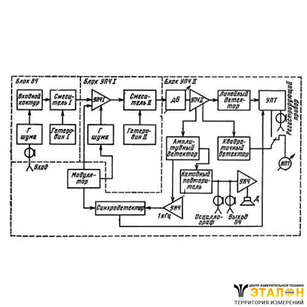 П5-34 выполнен на полупроводниковых элементах с использованием интегральных схем, а также содержит оригинальные узлы: гетеродин - на принципе умножения частоты; генератор шума - на полупроводниковом диоде.