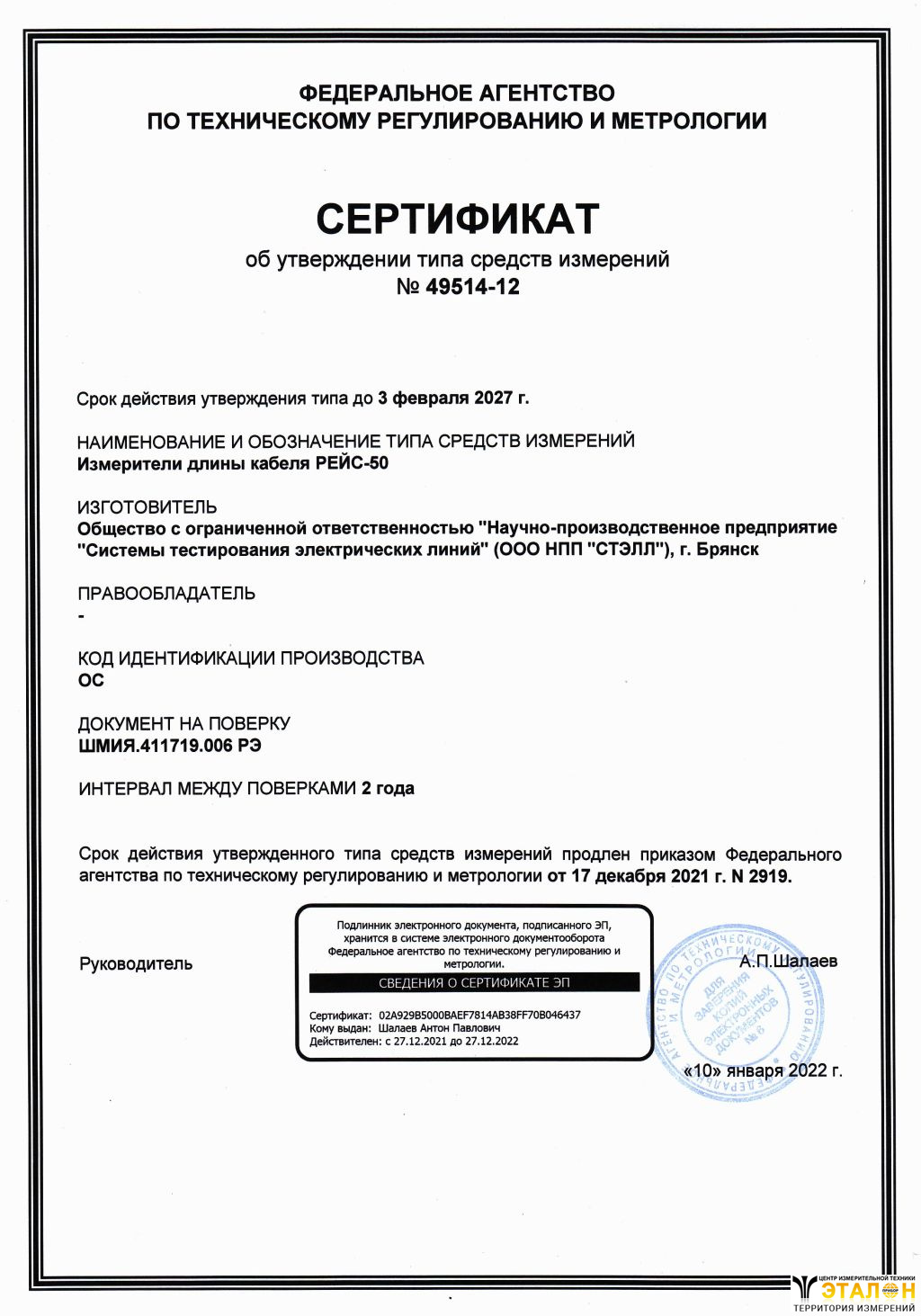 | 1 | Цифровой измеритель длины кабеля РЕЙС-50 | 1 |