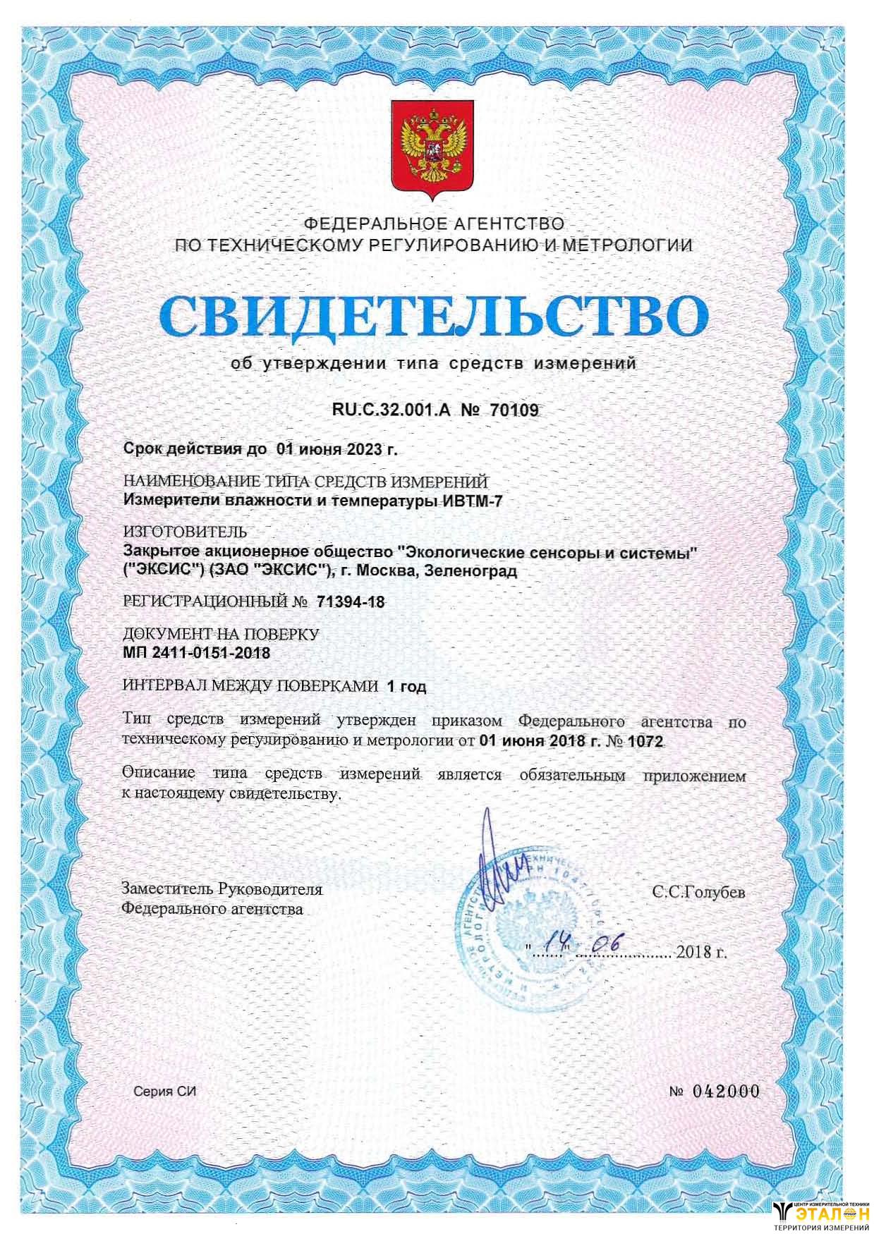 Термогигрометр ИВТМ-7/8-T("7) предназначен для непрерывного (круглосуточного) измерения и регистрации относительной влажности и температуры воздуха и/или других неагрессивных газов.
