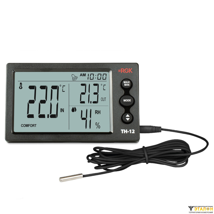 Цифровой термогигрометр RGK TH-12 с дополнительным выносным датчиком служит для измерения температуры в диапазоне -10°С — + 50 °С и влажности в пределах от 20% до 90%. Эта модель эффективно решает задачи по контролю режима хранения на складах, оценке условий труда на производстве или в офисе. Устройство также может использоваться как надежный помощник для создания комфортного климата в быту.