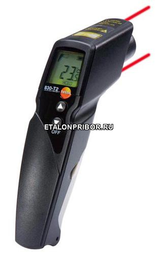 Пирометр testo 830-T2 универсальный инфракрасный термометр с 2-х точечным лазерным целеуказателем, с возможностью настройки предельных значений температуры, имеет функцию подачи сигнала тревоги. Внешний дизайн аналогичен testo 830-T1. Пирометр testo 830-T2 имеет возможность для подключения внешних зондов и выполнения дополнительных контактных измерений.