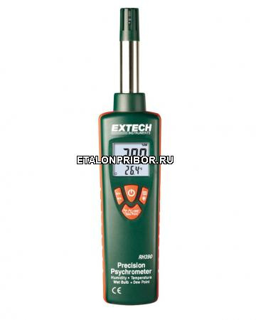 Extech RH390 - Прецизионный гигротермометр-психрометр: Высокая точность измерения относительной влажности в 2%.