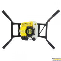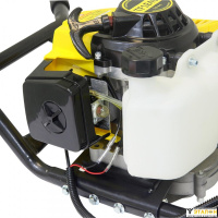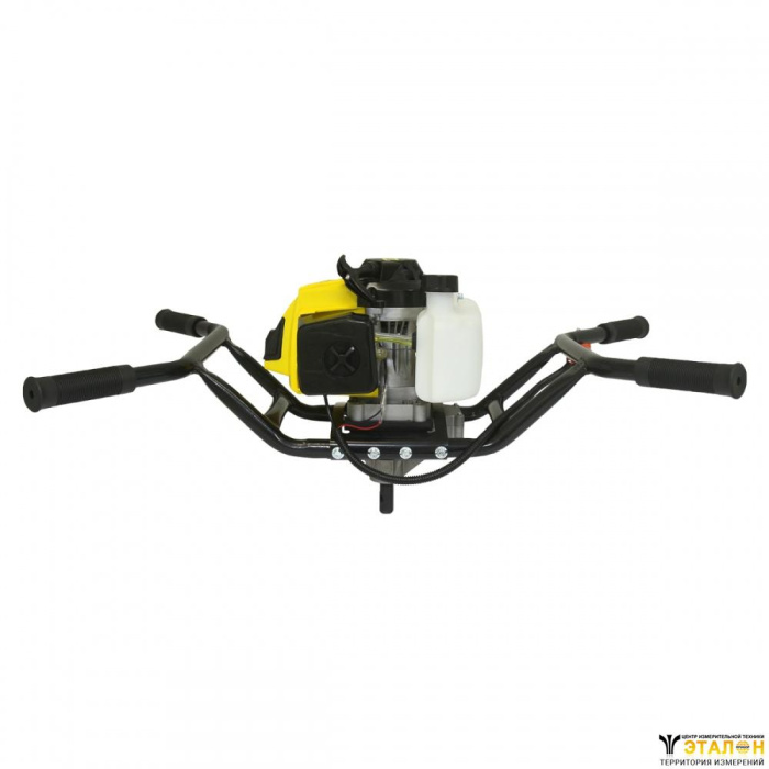 Бензиномоторный бур Калибр БС- 2000 предназначен для бурения грунта или льда, в зависимости от установленного шнека (шнек в комплект поставки не входит). Бензобур лёгкого класса, управляемый одним оператором, без труда пробуривает в песчаном грунте, чернозёме, суглинке скважины до 2-х метров глубиной, шнеками диаметром от 100 до 300мм. Оснащение бензобура центробежным сцеплением позволяет двигателю работать в режиме холостого хода, без приведения в действие шнека. Центробежное сцепление, расположенное на валу двигателя, автоматически включается при увеличении оборотов двигателя и отключается при переводе двигателя на холостой ход. Двигатель работает на топливной смеси из неэтилированного бензина АИ- 92 и масла для 2-х тактных двигателей. Он оснащён мембранным карбюратором и электронной системой зажигания. Для запуска двигателя служит ручной возвратный стартёр. Органы управления бензобура расположены на двигателе и рукоятке управления
