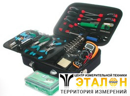 Набор инструмента для работы с электроникой. Идеально подходит для выездных работ. Со съемной панелью для инструмента. Кейс устойчивый к механическим повреждениям. Гибкое размещение инструмента. В состав набора входит мультиметр, позволяющий существенно расширить спектр выполняемых работ. Состав набора: • кримпер для зачистки и обжима кабеля - 1 шт. • нож для бумаги - 1 шт. • отвертка 3х75 мм (-) - 1 шт • 6" круглогубцы - 1 шт. • отвертка 3х75 мм (+) - 1 шт. • инструмент для радиомонтажа - 3 шт. • 6" бокорезы - 1 шт. • оловоотсос - 1 шт. • отвертка 5х75 мм (-) - 1 шт. • кассетница - 1 шт. • отвертка 5х75 мм (+) - 1 шт. • подставка для паяльника - 1 шт. • 5" круглогубцы - 1 шт. • пинцет - 1 шт. • отвертка 6х100 мм (-) - 1 шт. • набор шестигранных ключей - 1 шт. • 5" бокорезы - 1 шт. • ножницы - 1 шт. • отвертка 6х100 мм (+) - 1 шт. • паяльник 220В / 30Вт - 1 шт. • надфиль - 2 шт. • изолента ПХВ - 1 шт. • припой ПОС-61 d=0.8 мм 20 г - 1 шт. Технические параметры Типуниверсальный